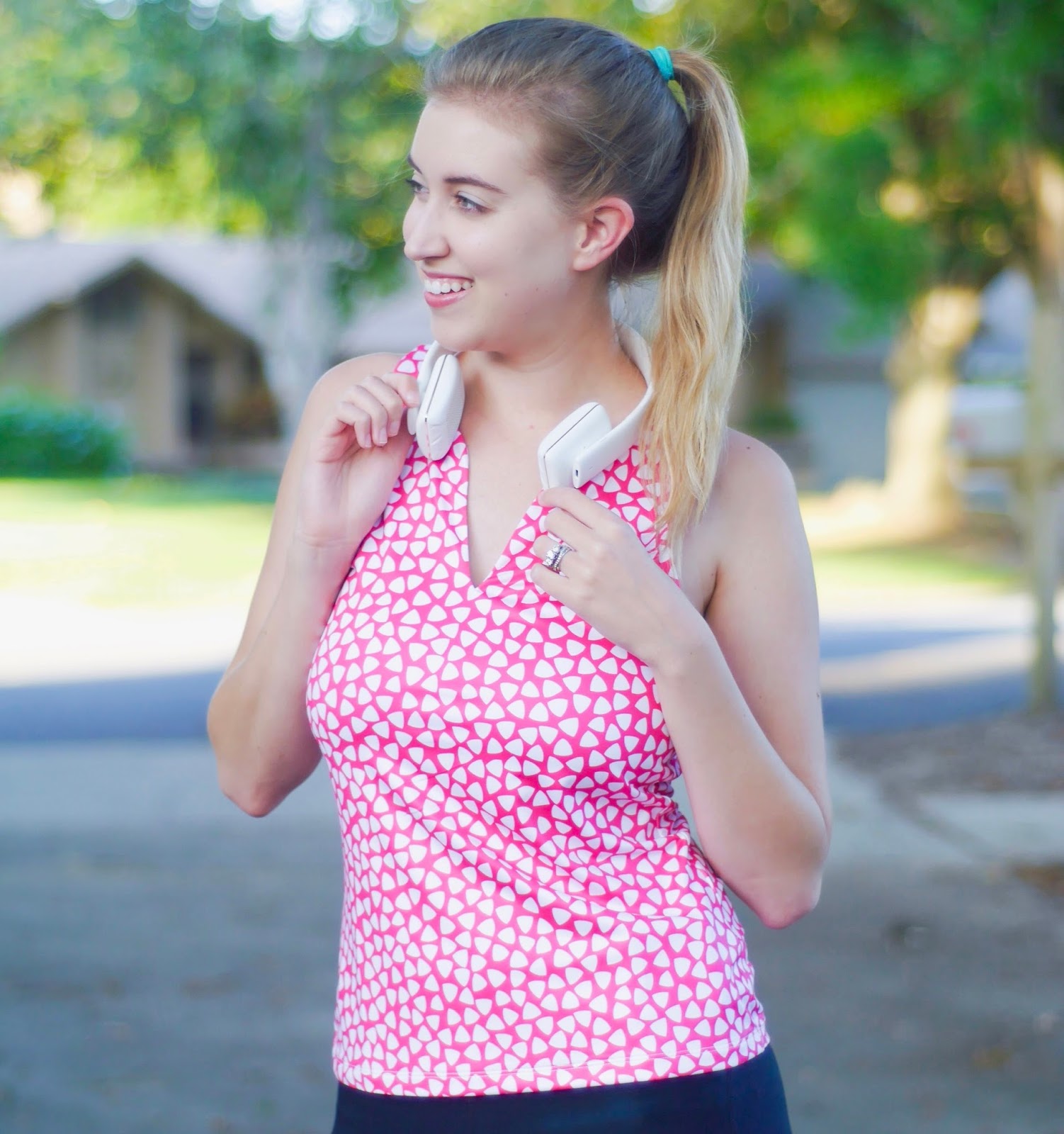 These headphones are from Specter Wireless, the ELUX collection. They're wireless bluetooth headphones that are also water resistant. Perfect for working out! No more getting tangled up in your headphone wires as you run (or quickly walk as in my case!) Plus they're totally made for Instagram, white with gold accents? I mean...